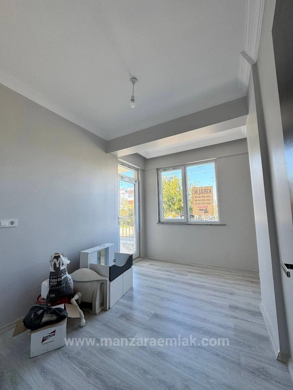 2025 yapımı sıfır daire, eşyasız, giriş kat. Bina 3 katlı. Dış cephe beyaz sıvalı, balkonlar demir korkuluklu. Parke zemin açık gri renkte, mutfak açık plan olup beyaz dolaplar ve granit tezgah mevcut. Tavan alçı kartonpiyer detaylı. Bina önünde parke taşı döşenmiş otopark alanı var. Su sayaçları bina dışında ayrı ayrı monte edilmiş. İç mekan yeni ve kullanılmamış durumda.