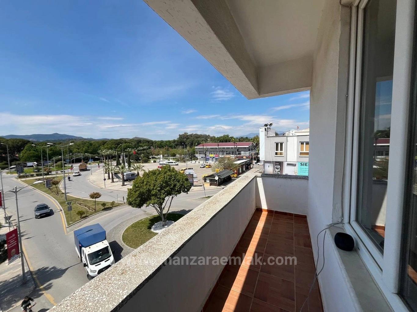 Eşyalı daire, Vodafone mağazası üstünde konumlu. Asansör yok. Fotoğraflardan gözlemler: Balkondan şehir ve dağ manzarası görülmekte, geniş bir kavşak/meydan alanına bakıyor. Yatak odası iki adet tek kişilik yatak, gardırop, çalışma masası mevcut. Oda geniş, laminat parke zemin. Bina otogar veya ticari alan yakınında konumlanmış görünüyor. Taksi durağı ve ticari işletmeler yakın çevrede mevcut.