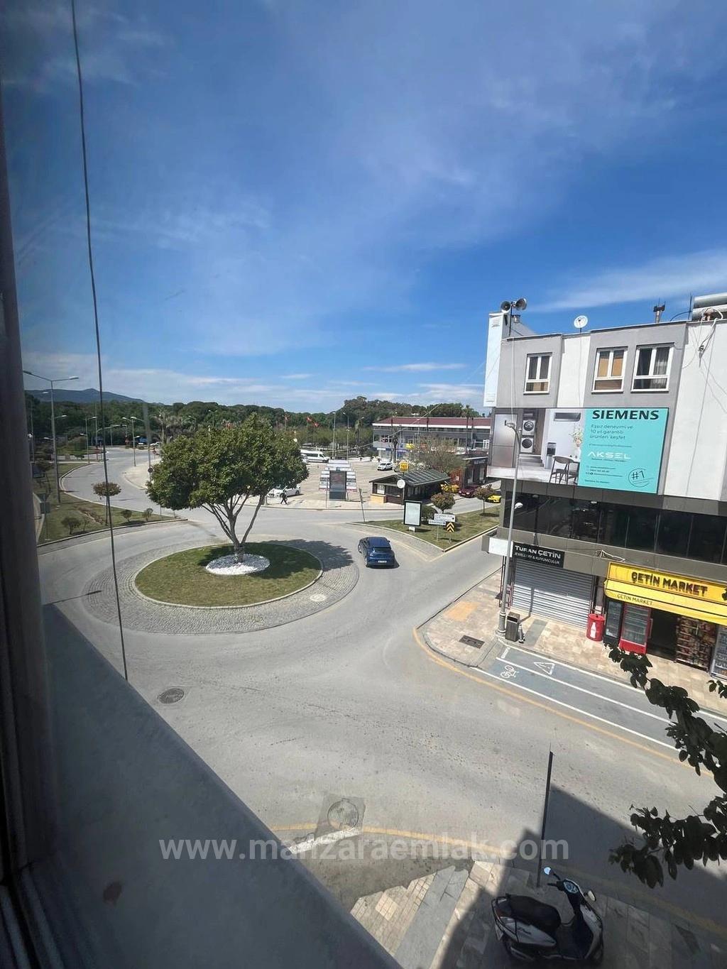 Vodafone üzerinde, Atatürk caddesinde girişte konumlu kiralık daire. Fotoğraflardan gözlemler: Daire kavşak/döner kavşak manzaralı üst katta konumlu. Çetin Market ve Siemens/Aksel tabelası görülen ticari bina üzerinde yer alıyor. İç mekan boş ve eşyasız, laminat parke zemin, renkli tuğla duvar kaplama detayı, sürgülü buzlu cam kapılar, ankastre raflar, beyaz duvarlar. Genel durumu orta seviyede, bakım gerektirebilir.